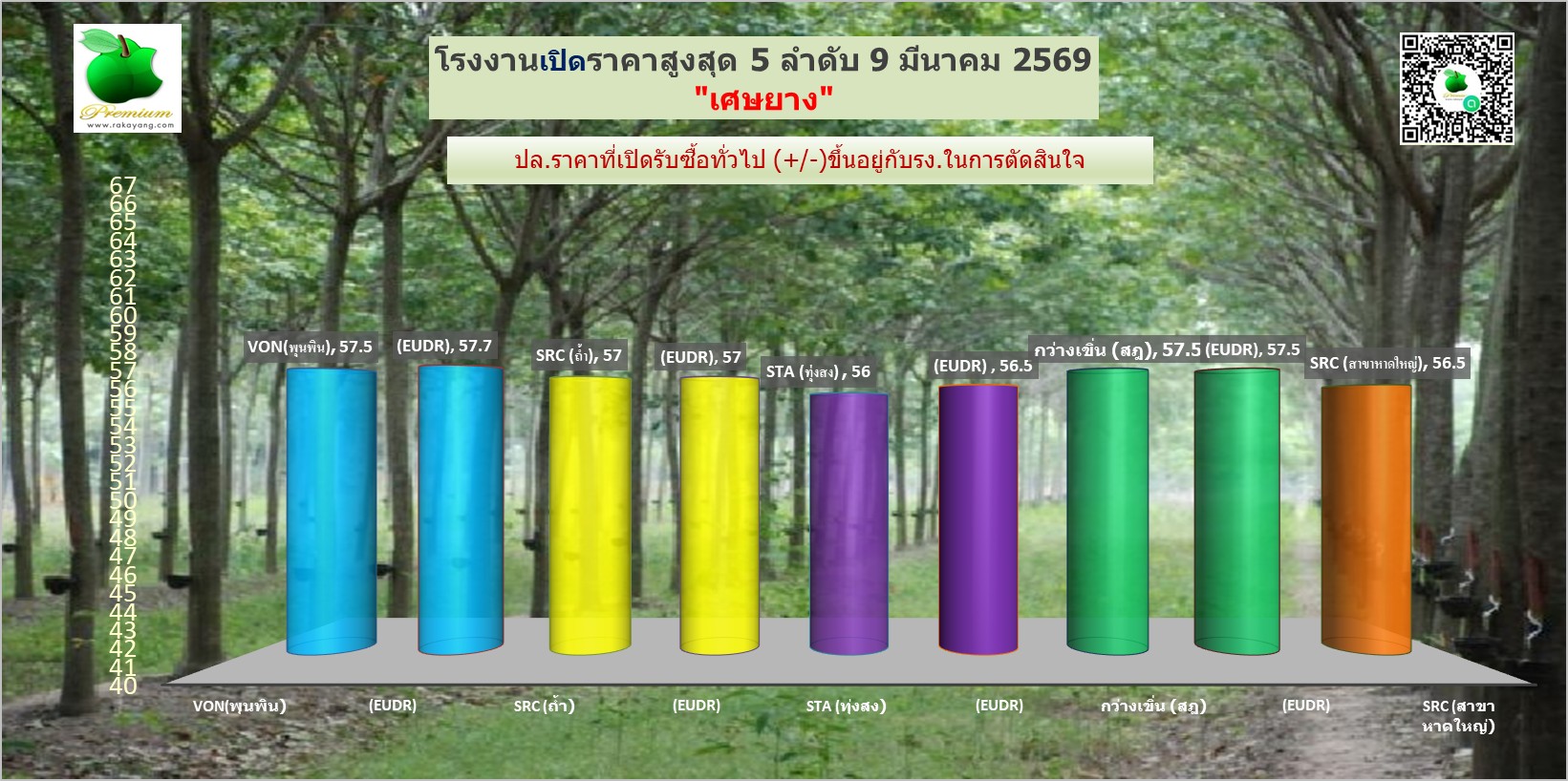 สรุปราคายางแผ่นรม/ดิบ เศษยาง เครฟ โรงงานทั่วไปประจำวัน จันทร์ ที่ 9 มีนาคม 2569